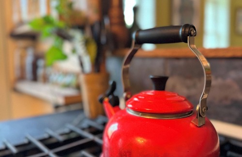 The Farm Kitchen is custom crafted with reclaimed lumber and has a fabulous 36 inch soapstone sink and countertop. It is fully equipped for you to host a lovely dinner and is well stocked with oils, spices, drygoods. We provide a dozen of farm fresh eggs, butter, coffee, tea, and milk as well. We do not serve Breakfast.The live-edge dining room has seating for 10 and is hand crafted out of piece of black walnut. There is ample seating in the living room, and you will be surrounded by plants that give the space a lush and organic feel.