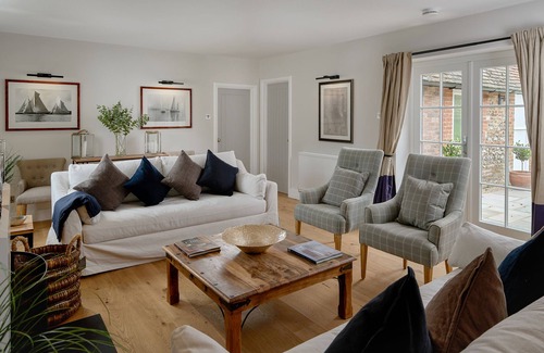 The house combines the character and charm of an older building with the modern finishes of a contemporary home in a superb rural setting. All bedrooms are ensuite. Seabeach Farm is approached via a picturesque tree-lined driveway passing through open fields to an inner gate, flanked by brick and flint walls and leading to a courtyard. It is set over three floors, with bedrooms on each level.