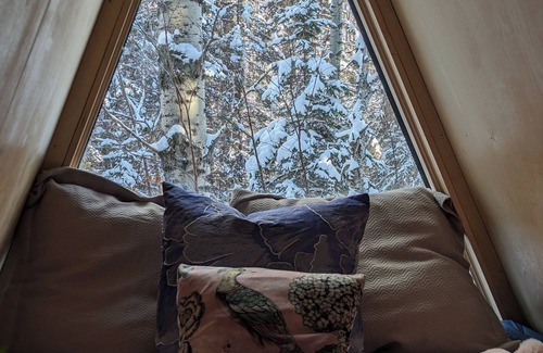Experience awe-inspiring modern architecture and cozy comfort in the atmospheric setting of the Boreal forest in our off-grid, pet- and family-friendly a-frame cabins.
