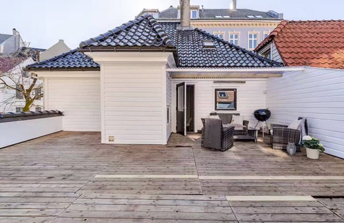 Welcome to The Fireplace Retreat – a spacious and authentic Bergen home in the heart of historic Skuteviken. Here, charm meets comfort: enjoy a quiet morning coffee on the rooftop terrace with beautiful views of the surrounding hills, or gather by the fireplace after a day of exploring.