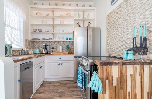 A cute little fully renovated vacation rental on Galveston Island on the Gulf of Mexico. Located 1 block from the Seawall providing easy beach access. This charming 820 square foot beach themed house is located within blocks of bike & golf cart rentals, 3 local bars, restaurants, corner store, local liquor store, and the new Lucine Hotel outdoor Patio Bar and restaurant . The house includes one queen bed, full kitchen, full bath, and laundry facilities. It’s the perfect Island getaway for two!