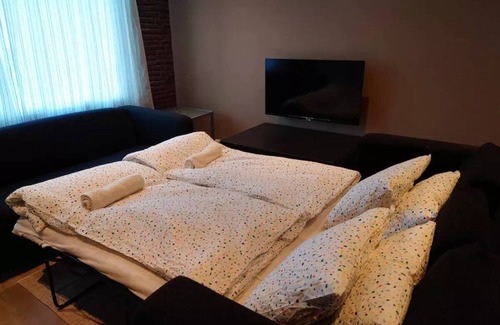 You will get access to two double beds and two sleeper sofas with fresh sheets, towels, bath gel and shampoo, internet, a cooker, cooking, and dining utensils, and a small selection of breakfast items (at least sugar, tea, and coffee). If you fancy a hotel buffet breakfast, the hotels in the area offer this option. It takes 2 minutes to get to the nearest one, so why not rest your head in our Shared Gem and wake up to a hotel breakfast if you need it? Depending on when you arrive, you might also be able to snag a delicious Too Good to Go pack from the nearest restaurants or stores for the next day!