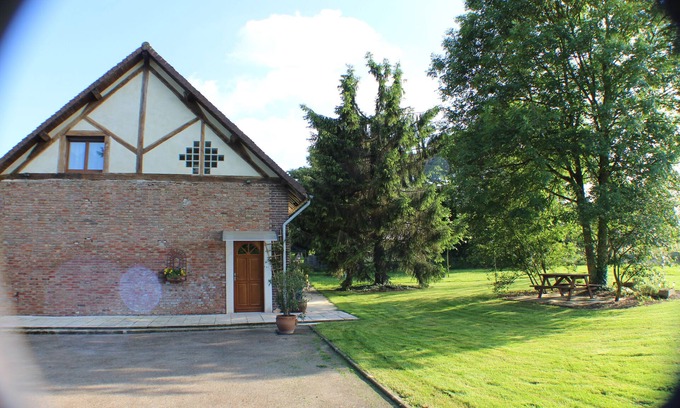 Patricia and Eric will welcome you in their house: a duplex apartment on the first floor of a charming farmhouse champenoise, you will enjoy a large green area with a picnic table where you can relax with family in peace and quiet. tranquility.