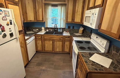 Just 10-15 minutes from The Battery (Go Braves!), this 2-bedroom, 2-bath rental offers a cozy retreat with vibrant global artwork and ceiling murals. The master bedroom features a private bathroom with a shower, and the second bath includes a tub. Enjoy a fenced yard, craft supplies, Legos, and blocks for creative play. There's also a VCR with kid-friendly movies and a smart TV for streaming. The fully stocked kitchen is perfect for any cooking needs. Ideal for a fun, relaxing stay!