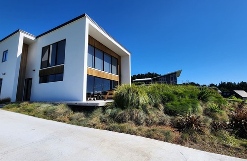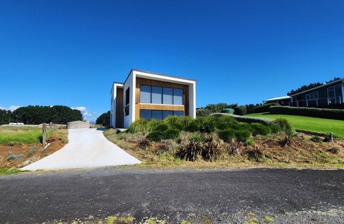 Welcome to The Gannet Hatch. Unwind, unplug and relax in this modern day bach nestled in an old-school kiwi town. Sit in awe of the commanding views over Aotea Harbour, Mount Karioi, Gannet Island and beyond. Explore the community, beach and harbour by foot or don't leave the house at all. Full kitchen, BBQ, two living areas, and large deck are all yours to enjoy. A peaceful, perfect and picturesque getaway for couples.