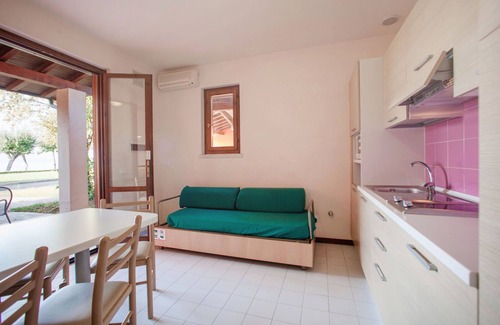 Large, child friendly holiday village "The Garda Village". 360 houses in the resort. In the district of Colombare, on the outskirts, 5 km from the centre of Sirmione, 100 m from the lake, 100 m from the beach, direct access to the beach. For shared use: property 16 ha, 3 swimming pools (seasonal availability: 19.Apr. - 15.Oct.). WC in the pool area, children's pool, slide, outdoor shower, hot tub, tennis (extra), table tennis, volleyball court, children's playground. In the complex: reception, restaurant, bar, bistro, internet access, WiFi (extra). Playroom, table football, kiosk, washing machine (extra), tumble dryer (for shared use, extra), bicycle rental. (extra). Room cleaning on request (extra). Half board on request (extra). Parking on the premises. Supermarket 500 m, bus stop 400 m, ferry "Sirmione, Piazza Carducci" 4 km, sandy beach 100 m, thermal baths "Aquaria" 4.2 km. Marina 1.5 km, minigolf 100 m. Nearby attractions: Desenzano 5 km, Peschiera del Garda 9 km, Verona 40 km, Mantova 50 km. Please note: entertainment in the season. Suitable for families, baby equipment on request (extra). Obligation to wear bathing caps.