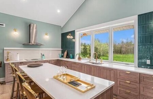 Come up to Michigan and spend some quality relaxation time on our Chestnut farm! We've built a brand new farmhouse that has spared no expense to give you the perfect place to explore Sautatuck, the Arts Coast and West Michigan wine country! A stunning kitchen with Thermador appliances and Villeroy and Boch tableware. Ten foot showers with fresh eucalyptus service. Thick velvet curtains, moroccan rugs and comfortable furnishings. Just minutes from Douglas and Saugatuck! Bocce court, croquet court, woodland path, hot tea & hot sake service, chef's kitchen