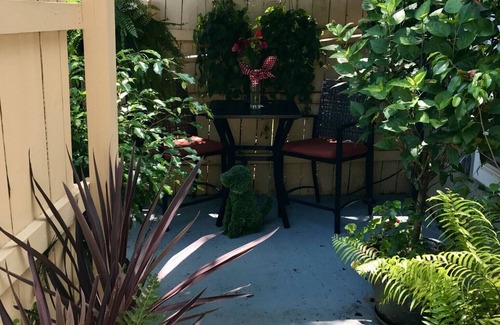 This is a newer, separate from the main house, clean, self contained studio apartment. The studio apartment shares the backyard with the main house. It's completely private and is behind a fence with two entrance gates and two additional entrance doors. It's a very quiet space. Separate driveway and on-street parking is available. A washer and dryer is available, behind the main house backdoor.