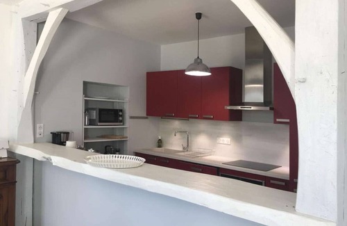 Fully equipped kitchen, with dishwasher, fridge-freezer, convection oven, microwave oven