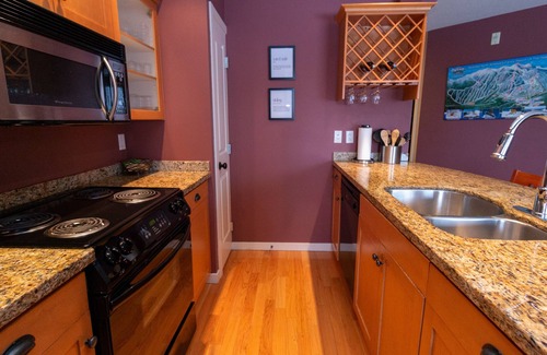 Enjoy the bustling mountain and village views from your private hot tub on the covered balcony, or easily access the shops & restaurants, right on your doorstep!