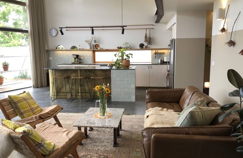 Make your Beechworth stay memorable in this new Eco architecturally designed industrial-modern 2 storey home set on the edge of historic Silver Creek and stone bridge a short 6 minute walk to shops / restaurants.