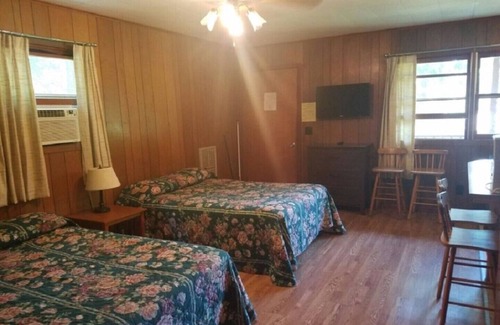 Cottage Three is just right for your party of up to 4 people where its a one room unit with 2 double beds, flat screen cable TV, air conditioning and much more. The full kitchen that is included has your daily amenities such as full sized refrigerator, stove top, coffee maker, toaster, cups, plates, utensils, pots and pans. Think of all the money you can save by having all these conveniences in your own cottage. Also, this cottage has its own picnic table, porch and BBQ grill.
