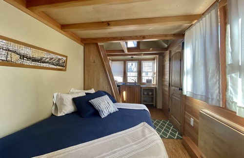 Nestled just steps from the river and minutes from Estes Park, Boulder, and Rocky Mountain National Park, the Golden Aspen tiny house offers a peaceful escape in the heart of Colorado’s natural beauty. With 255 sq. ft. of thoughtfully designed space, this tiny home blends comfort and convenience with an unbeatable location.