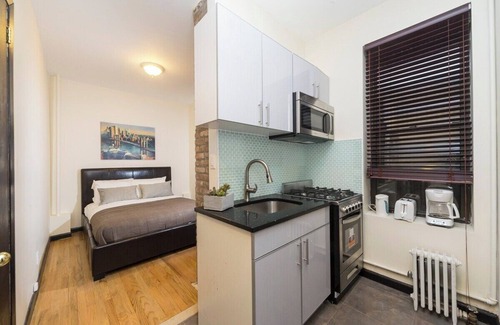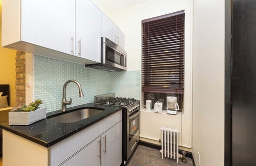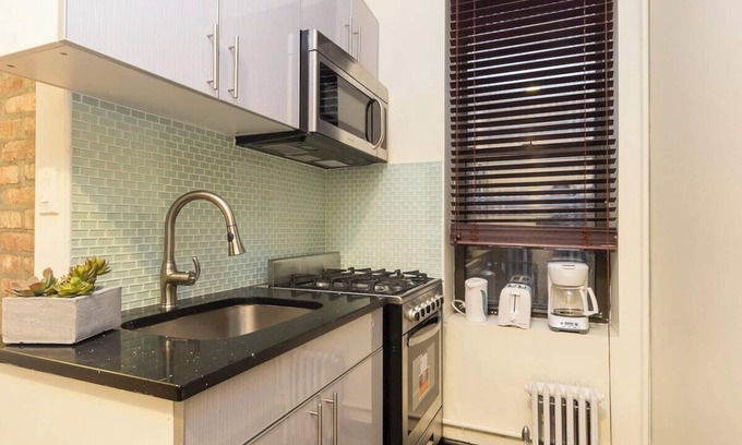Step into The Gram VII, a cozy studio on the first floor in Gramercy, New York. This walk-up residence comfortably hosts up to two guests. The kitchen is equipped with a stove, oven, and dishwasher. High-speed Wi-Fi, air conditioning, and a TV make it ideal for work and leisure, while family-friendly features cater to all ages.
