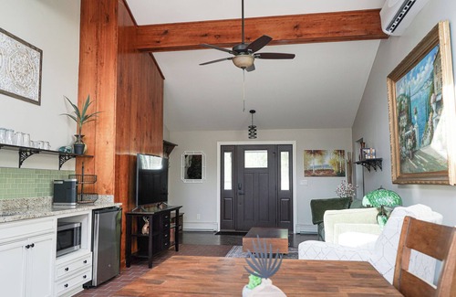 Swim in the river from your private dock, relax on the sandy beach, or explore the ungroomed ATV trails on-site. Take advantage of the included kayaks, paddleboards, fishing poles, and inner tubes for endless water adventures. Back at the house, enjoy mini-split air conditioning, Wi-Fi, and Smart TVs throughout. Spot local wildlife like bald eagles, deer, and foxes, or cast a line to catch salmon, bass, or walleye. For evenings, gather by the wood fireplace indoors or one of the outdoor firepits for cozy relaxation. The nearby Farmer's Market and Island Park are just 12 minutes away, while Lansing and Detroit are within an easy drive, making The Grand Riverhouse a perfect balance of seclusion and convenience.
