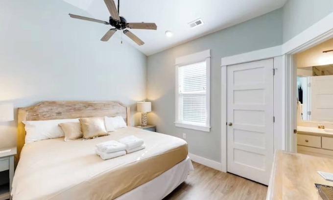 Feel the stress melt away as you step into the luminous open-air living room and sleek kitchen. No culinary dream is out of reach with the well-equipped cabinets and new stainless-steel appliances at your fingertips (plus your own gas grill outside). Gather round the island to make memories over a meal and then sink into the sofa for movie night in front of the flat-screen TV.