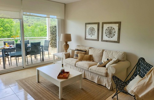 Recently renovated flat , with a very spacious and bright living room and terrace , it have community pool and car parking , located few meters from the port overlooking the sea, perfect for spendig some family vacation days in costa brava.