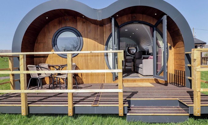 The Hazel Hobbit Pod in Cowbridge, sleeps six people in two rooms.