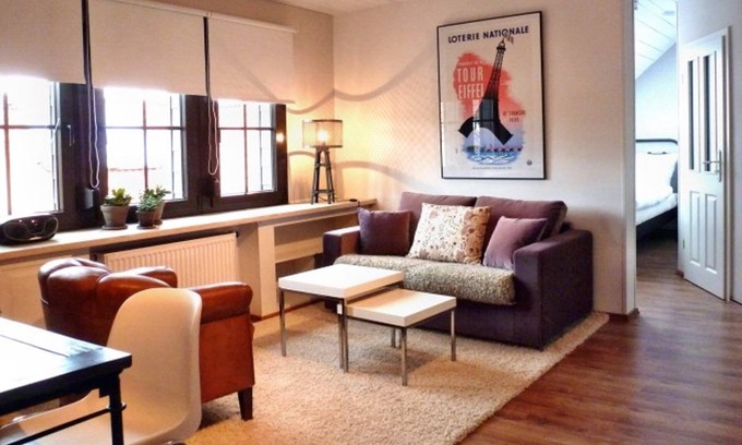 The apartment is furnished with a mix of modern furniture and selected old things.