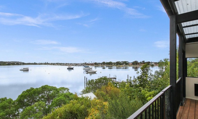 The Hide Away is a charming holiday home in Kalimna, offering breathtaking views of the town and water. This spacious property features three bedrooms, each with its own ensuite, and a newly renovated sunroom. It's perfect for family getaways, with amenities like a full kitchen, boat mooring, and a large outdoor entertaining area. It's close to Lakes Entrance, with easy access to shops, cafes, and the beach. Note that the steep driveway is recommended for four-wheel-drive vehicles.