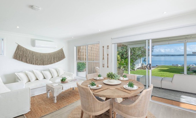 Welcome to The Hideaway at Bonnells—an ultra-stylish, waterfront escape where relaxed luxury meets whimsical charm. Positioned on the ground floor of the main cottage, beside a lush waterfront reserve and just steps from the shoreline, this light-filled retreat invites you to unwind beneath a canopy laced with solar fairy lights. Think barefoot afternoons on oversized outdoor lounges, dreamy water views, and a private jetty that practically begs you to dip your toes in.