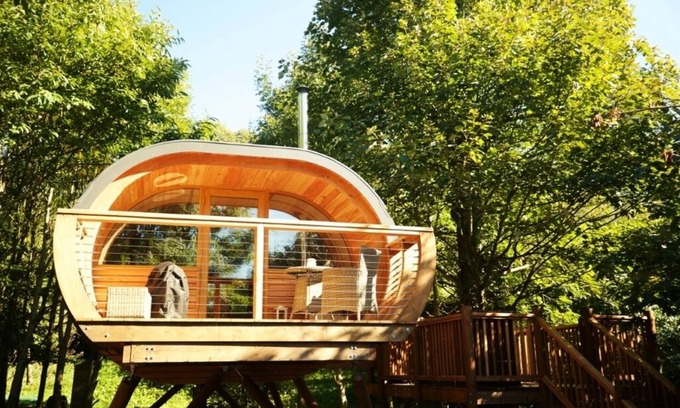 The Hideaway is a luxury, dog-friendly treehouse nestled in peaceful East Devon woodland, with sweeping views over fields and out to sea at Hartland Point. Designed for two adults (plus up to two children), this intimate space blends rustic charm with modern comfort—perfect for couples or small families looking to escape.