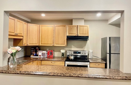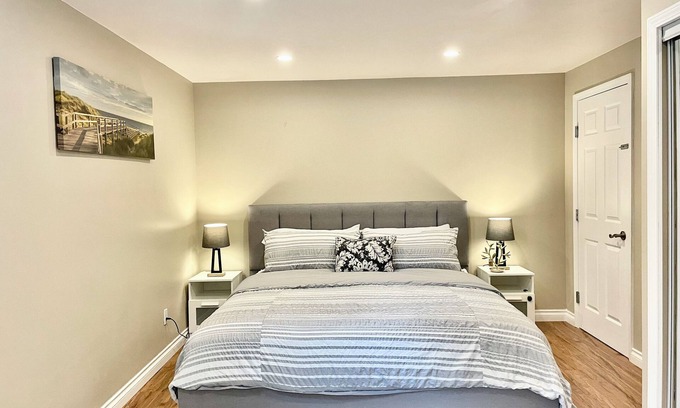 This stylish and cozy suite is newly renovated and fully furnished. It features two spacious bedrooms, a fully equipped kitchen, a comfortable living room, and a private bathroom—ideal for family vacations or business trips. Located in the heart of the city, it offers convenient access to supermarkets, restaurants, and public transport. Enjoy fast Wi-Fi, free parking, and a peaceful environment. We warmly welcome you to stay and experience a home away from home!