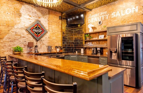 Ooooh yeah. You've just stumbled upon the hippest, swankiest, most exclusive spot in town...Welcome to The Highball Speakeasy Lounge & Retreat by BNB Louisville! This top to bottom ultra high end renovation has it all...and then some. Enjoy two separate, mega-spacious and unique homes in one PRIME location connected by our signature sky deck overlooking Baxter Jacks beach volleyball. 6 huge Bedrooms, 9 beds (5 King), 4-1/2 Bathrooms of uber luxury. Ideal for large groups up to 14+. ASK ABOUT PRIVATE EVENTS