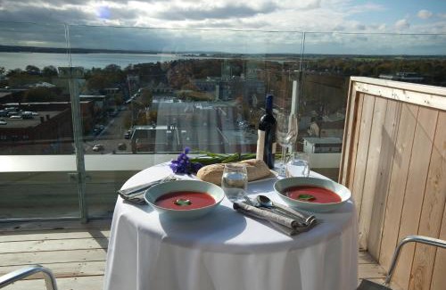 With panoramic views of Queen’s Square and Charlottetown Harbor, this boutique hotel features a 7-story atrium and on-site dining. The rooms offer a 42-inch flat-screen TV and free WiFi. An iPod docking station and in-room safe are provided in each guest room at the Holman Grand Hotel. A refrigerator and coffee maker are included. Regional French cuisine is served at the Holman Grand’s Redwater Rustic Grille. The restaurant features outdoor balconies and a selection of wines. Guests can work out in the on-site gym or relax in the indoor pool and hot tub. A business center is available. The shops of Confederation Court Mall and the Confederation Center of the Arts are connected to the Charlottetown Holman Grand Hotel. The Charlottetown Civic Center is a 20-minute walk from the property.