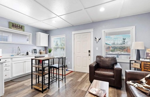This cozy horseshoe bungalow is located in downtown Prescott. We’re a a half mile (10 minute) walk to the Courthouse Square & Whiskey Row. The Rodeo grounds is 1 mile away and Prescott College right across the street. Hiking, biking, fishing just 5 mins away! We offer a private fenced in yard with patio. Our unique Vrbo indulges in the Wild western decor, including 1 bedroom, sofa bed, 1 bath and full kitchen. Traveling with others? Book The Cowgirl & Cowboy Hideaway too!