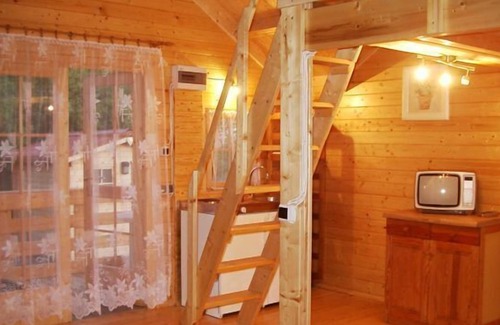 Drodek 3 - wooden house for 3 people. Living room with kitchenette, bathroom with shower and toilet, sofa bed for 2 people and mezzanine with sleeping possibility for 2 children. Wooden house is closed in winter.