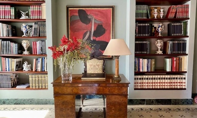 The Study with its two large bookcases, period desk and frescoed ceiling, proves the ideal space for those who want to isolate themselves, working, in beauty.