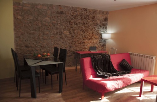 The living room has flat screen TV 32 "dining table, sofa bed extension, fitted kitchen with ceramic hobs, refrigerator and microwave oven hood high end. Naturally, it has the essentials for cooking, crockery and cutlery. It has heating, hot water and Wifi. . They also have bedding and bath material cleaning and toilet, iron, hair dryer and complimentary details that will surprise you.