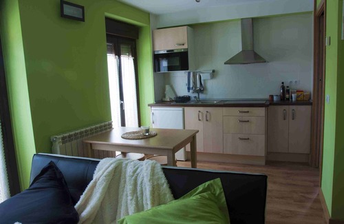 The living room has flat screen TV 32 "dining table, sofa bed extension, fitted kitchen with ceramic hobs, refrigerator and microwave oven hood high end. Naturally, it has the essentials for cooking, crockery and cutlery. It has heating, hot water and Wifi. . They also have bedding and bath material cleaning and toilet, iron, hair dryer and complimentary details that will surprise you.