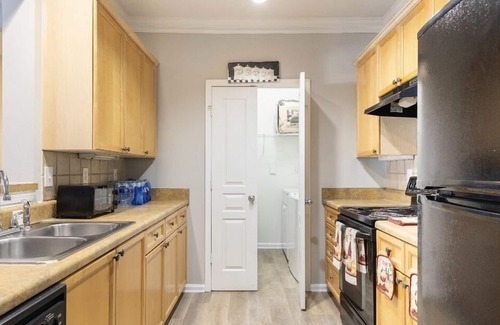 A comfortable space is perfect for working travelers or small families. The apartment offers all modern-day essentials, cutting-edge communal amenities, and proximity to lots of activities.