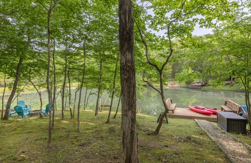 Just outside the sliding glass doors is your own private piece of paradise. The expansive deck features an outdoor lounge area with smart TV, ample sitting areas, and a gas grill - perfect for summertime family BBQ’s or enjoying a peaceful evening with friends. A private dock, kayaks, paddleboat, and fire pit area are perched lakeside, waiting for you to take full advantage of private lakeside living!