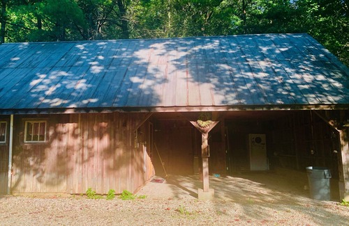 An adorable efficiency apartment located in a barn on the property of an 1880's farm house on 15 acres of private land nestled in the beautiful Stecoah valley in rural Western North Carolina. The farmhouse is a separate rental, so there may be other guests on the property, but no indoor spaces are shared. The apartment has a small kitchen with a two burner cooktop, microwave oven, toaster, Nespresso, drip coffee maker and a full size refrigerator. It has a full bathroom with a walk in shower and large empty closet. The sleeping arrangements are a sofa which pulls out to a two person bed. There is a window unit air conditioning which cools down the apartment nicely and a gas wall heater. The property has 3 pastures in the back, one of which contains one horse. Behind the pastures is Stecoah Creek which is stocked with trout periodically throughout the year and fishing is allowed. The property also contains a chestnut tree orchard. You are welcome to roam the property, we just ask that you do not go into the pasture where Don the horse lives.