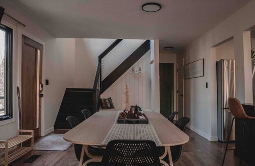 This is a beautiful two bedroom, two full bath open concept lofted space. Each bedroom is private and has a queen bed with sliding doors out to the patio/balcony overlooking the fire pit. The second floor en suite bedroom has a private full bathroom, ample closet space, and a desk. There is a comfortable queen size pull out couch in the loft living area.