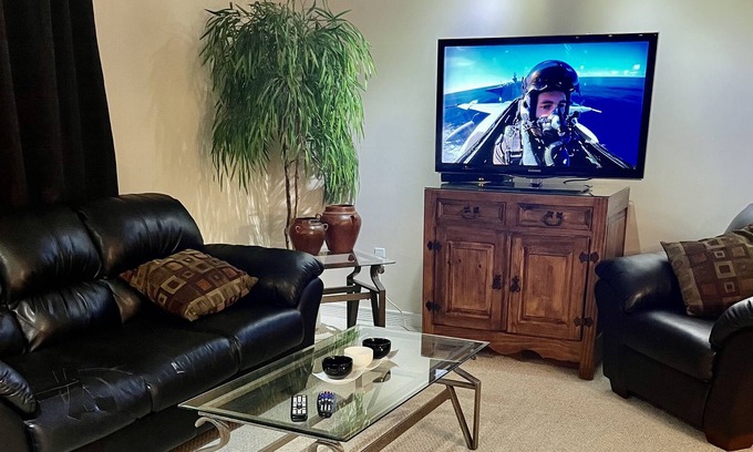 Jurassic Suite home is a family friendly 1,200 sq ft 3 bedroom, 2 bath unit, sleeping up to 6 in beds. Also have a roll away bed for additional person. This fully furnished extended stay suite is in the heart of Drumheller. Centrally located in the tourist district, across from the World’s Largest Dinosaur, Aquaplex pool, Rotary Splash Park, and the Drumheller Recreation Centre and Hockey arena . It is a short walk to down town and local hiking trails.