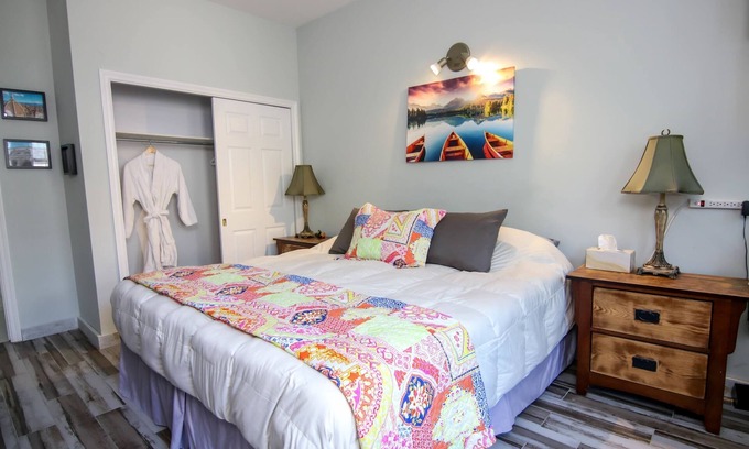 The Jypsy Inn - Muskoka Room Bracebridge has 1 Bedroom , 1 Bathroom, and max occupancy of 2 people. The minimum rental for this property is 1 nights, but this can change depending on the season you plan on staying. Previous guests have given good rated it, and VRBO labeled it a top-rated Apartment because of the excellent services rendered by the owner or manager of this Apartment, and has consistently provided great experiences for their guests. Most families or guests that use it recommend it to their friends and some of them are repeat guests. Apartment has a friendly neighborhood, and the Bracebridge has interesting places to visit. If you want to learn more about the Apartment in Bracebridge, such as places to visit and things to do nearby, you can check below to learn more.