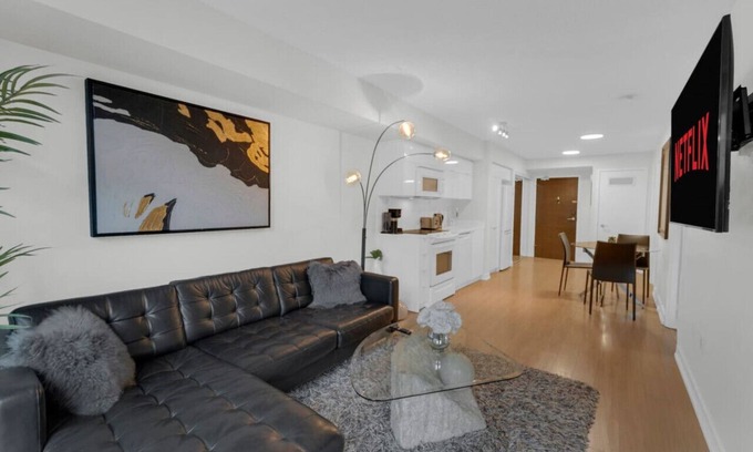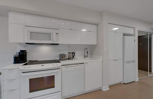 The space is a stylish modern unit with all new furniture, located in the heart of downtown Toronto.