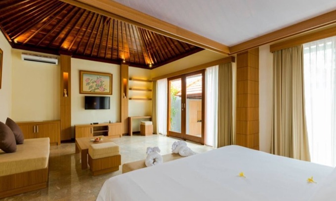 One bedroom villa ensures an enjoyable stay, especially for honeymooners and romantic couples, combined stylish design of contemporary furniture with the decoration ornaments in Balinese style, and some tasteful paintings are on the wall.