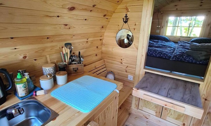 The Kirsche - Rustic sleeping barrel in East Frisia is located in Holtgast. The Kirsche - Rustic sleeping barrel in East Frisia provides accommodation, featuring Security/Safety, Bedding/Linens, Wellness Facilities, among other amenities. This Cabin features Security/Safety, Bedding/Linens, Wellness Facilities, to make your stay a comfortable one.