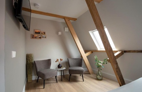 Food & DrinkTea/Coffee makerBathroomShower, Bathtub or shower, Toilet, Private bathroom, Toilet paper, Walk-in shower, Hairdryer, Body soap, Towels, ShampooMedia & TechnologyTV, Streaming service (like Netflix), Flat-screen TVGeneralTrash cans, Smoke Alarm, Hypoallergenic, Heating, Air conditioning, Key accessOutdoorsBalconyKitchenElectric kettle, RefrigeratorLiving AreaSitting areaBedroomExtra long beds (> 6.5 ft), Wardrobe or closet, LinensViewView, Quiet street viewAccessibilityUpper floors accessible by stairs onlyRoom AmenitiesSocket near the bed, Hypoallergenic pillow |
