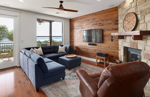 This hill country escape has 2 expansive decks of panoramic Lake Travis views. Enjoy all The Hollows resort has to offer ~ swimming, boating, fishing, sport court, and miles of hiking. Just out the front door guests access grills, smoker and fire pit at a hilltop pavilion with lake and canyon views. The Hollows Beach Club with multiple pools, waterfall, grills, fitness center, pickleball/basketball court and a seasonally heated spa and full-service restaurant is just a short drive or leisurely stroll down the hill.