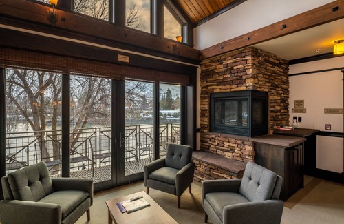 Stay at our beautiful property! This room type has a charming fireplace, and jetted tub. We are centrally located in downtown Chelan, just a few steps away from boutique shops and night life. This room is only accessible through stairs, and there is a possibility for some noise because this room is located above a restaurant. THE LANDING operates as an AIRBNB property. Staff is not always on site, but always available upon request. Pets are not allowed at this property.