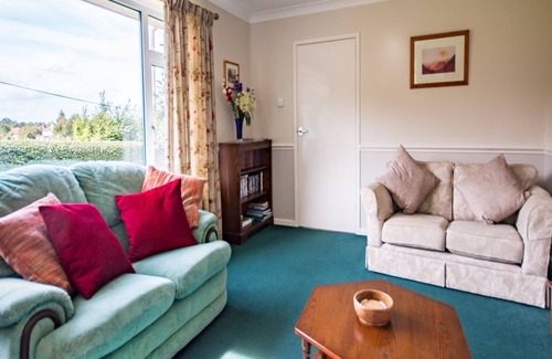 The Lawns is comfortably furnished and centrally heated, making it an ideal holiday spot whatever the season. The garden, which is the owners pride and joy is of particular note with substantial lawns and well-tended flower borders, a covered seating area immediately outside the back door is a lovely sun trap. Being all on one floor The Lawns is ideal for those who find stairs a challenge. There are no internal steps and the back door step is reasonably shallow so may suit partially disabled.