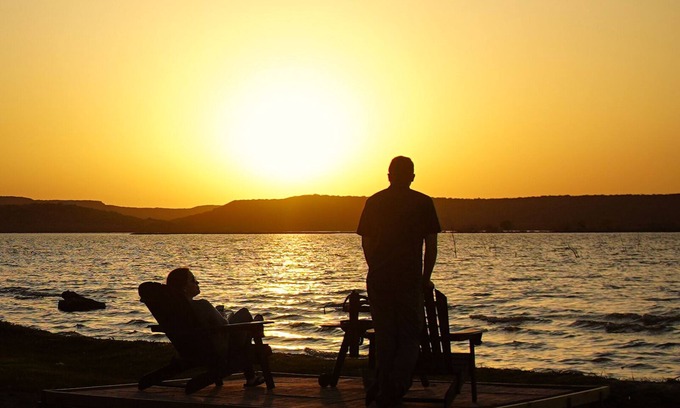 The Lazy Possum Cottage is a modern fishing cabin on the north side of Possum Kingdom Lake. This remodeled waterfront property offers a gentle slope to the water perfect for swimming and wading. It is usually deep enough to moor a boat or jet skis right at the shore although if the water level fluctuates you might have to tie it up a little further out or use our boat slip at the marina less than a quarter of a mile down the road. This is also the closest boat ramp.