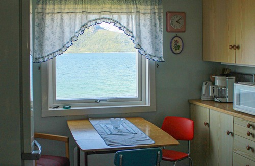 Unique natural spectacles, plenty of peace and quiet and a sensational view of the idyllic landscape await you in this charming holiday home by the fjord. Prepare hearty soups in the cosy, fully equipped kitchen and enjoy them with a view of the water. Light the wood-burning stove and make yourself comfortable in the cosy living room with an exciting book or a board game.