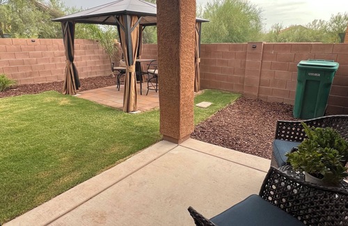 This home sleeps a total of 14 people. The neighborhood is quiet & peaceful. Come relax in our spacious oasis backyard. It has a relaxing gazebo with misters & plenty of room. This place is 2 stories. It has a total of 5 bedrooms. 4 of them are upstairs and the last bedroom is downstairs. There is a total of 2 1/2 bathrooms. Upstairs, you can relax in the loft. The master suite comes equipped with a TV and brand new beautifully remodel, stone shower. You will have access to free high-speed Wi-fi